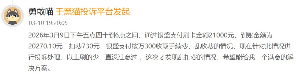3月10日开云体育,黑猫投诉平台来私用户的投诉表露,通过银盛支付刷卡金额21000元,到账金额为20270元,扣费730元,银盛支付(存在)乱收费的情况……这仅仅冰山一角,黑猫投诉表露,该平台共有37608条投诉中包含搜索词银盛支付。